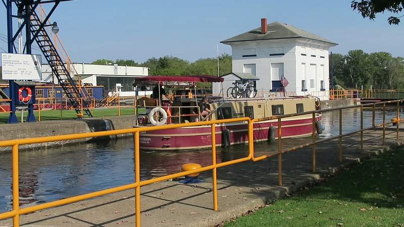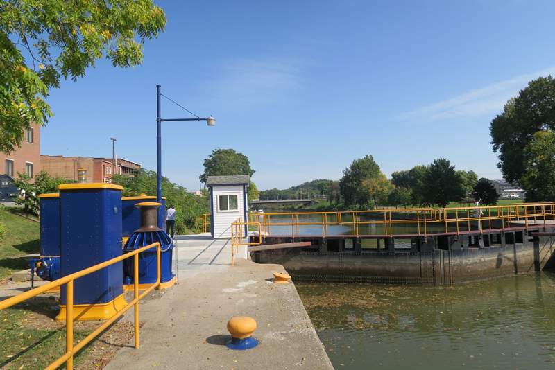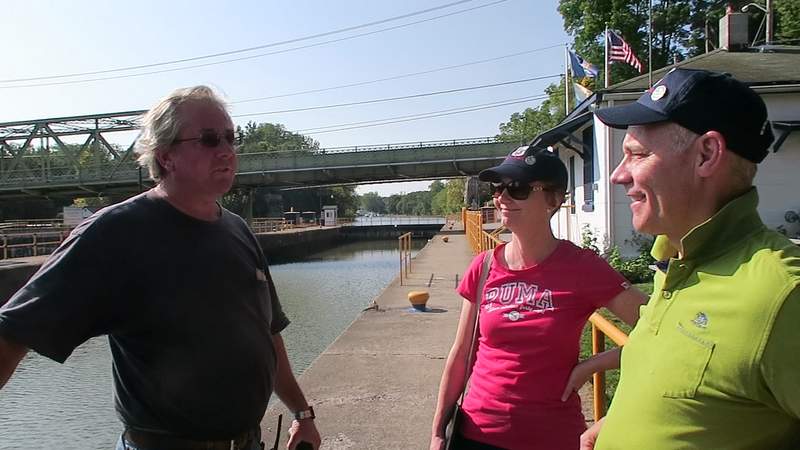 Michelle and Cris talking to the New York lock keeper